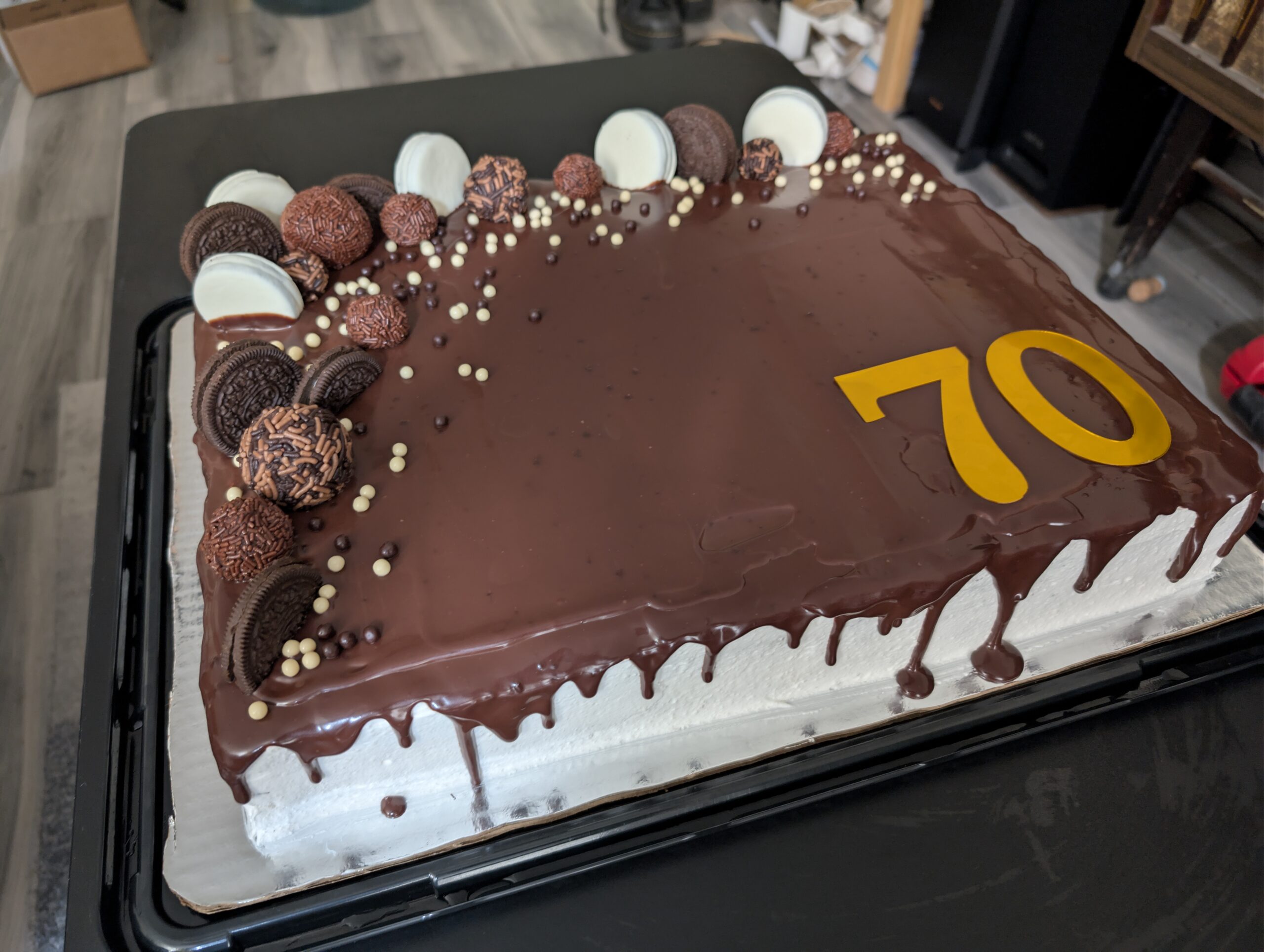 Pastel grande con porciones de 100-120 gramos por persona, para 50 personas.